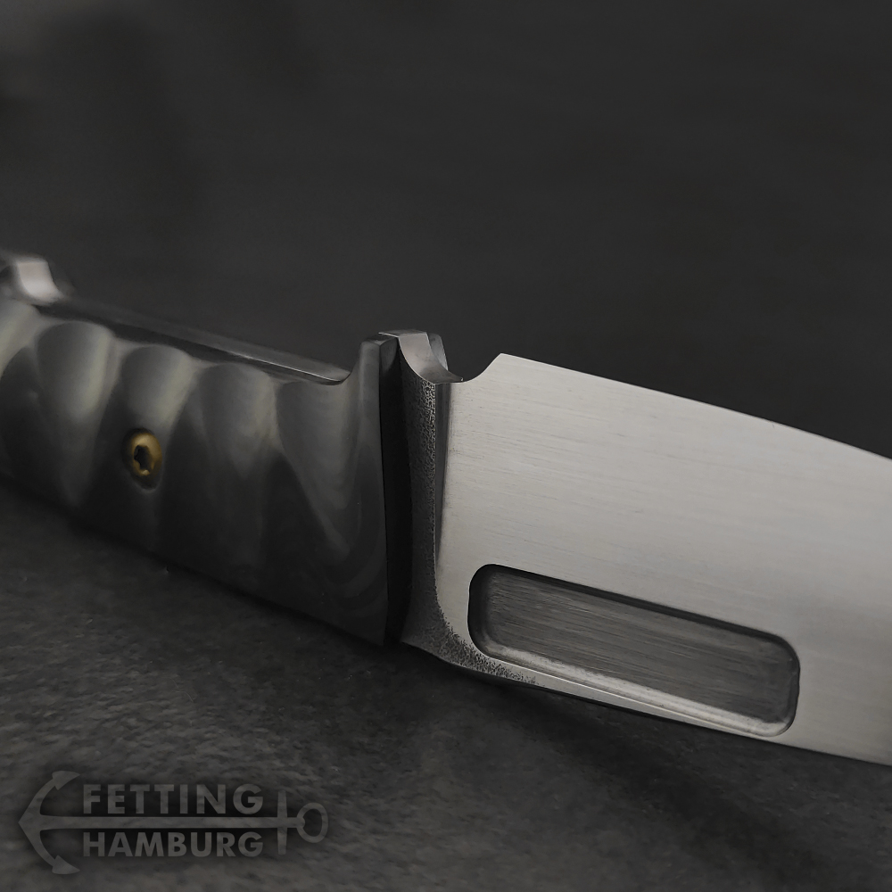Wenn es auf geringes Gewicht bei längeren Wanderungen ankommt, dann kann dieses Messer auch als Ultra light Ausführung gebaut werden! Backen aus Titan (oder ohne und dann noch leichter), Hohlkehle und Micarta drücken das Gewicht auf ein Minimum!
