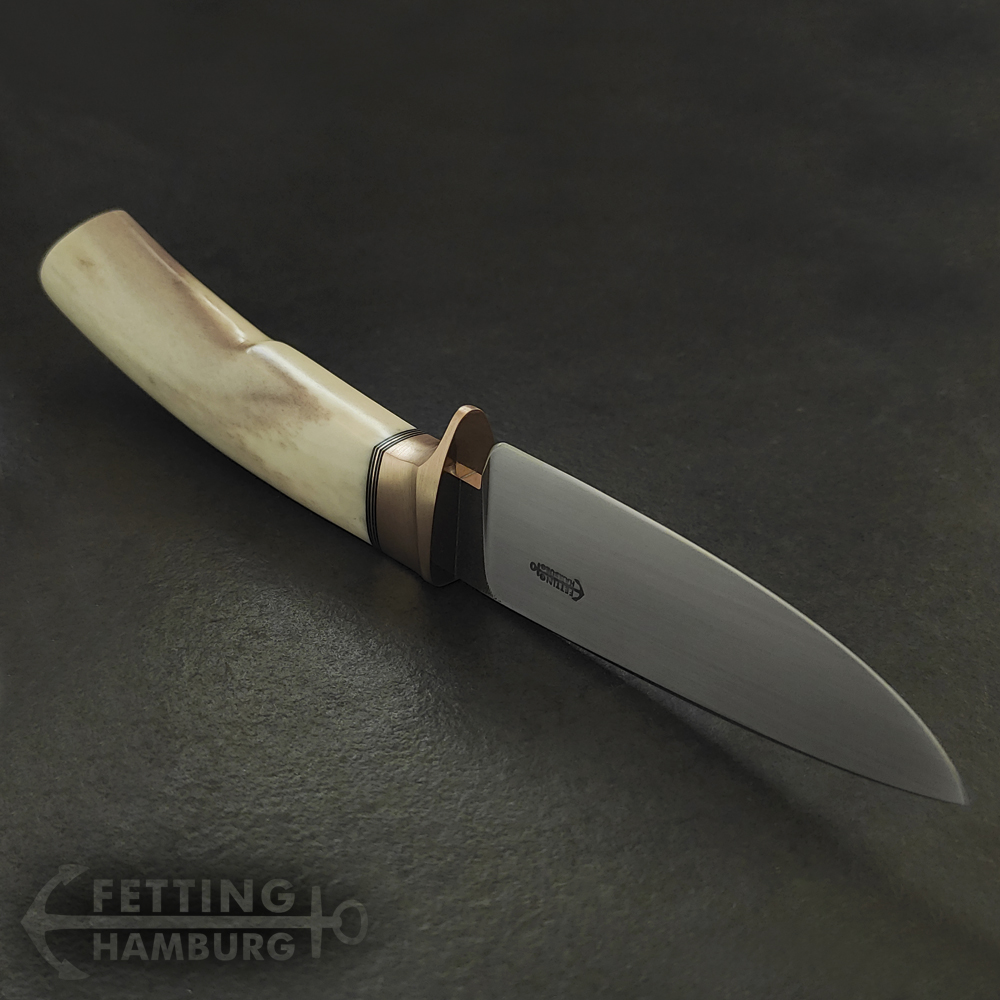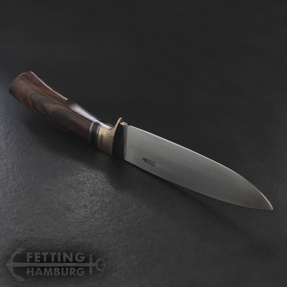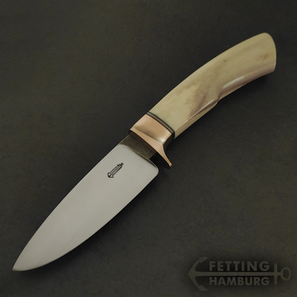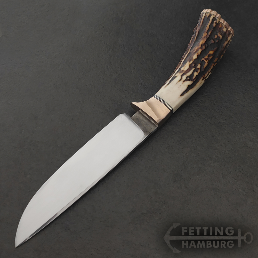 Der Jäger ist als Jagdmesser gedacht mit 11-12cm Klinge aus 1.3505, als Clip Point oder auch Drop Point.